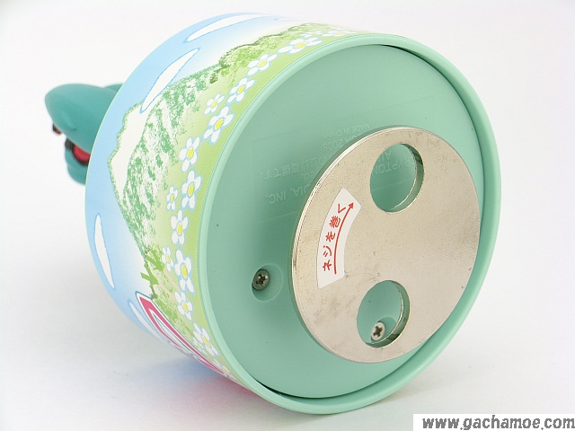 底面にはおっきなネジ。いっぱい回すと、はちゅねが4周半ぐらい回るよ!