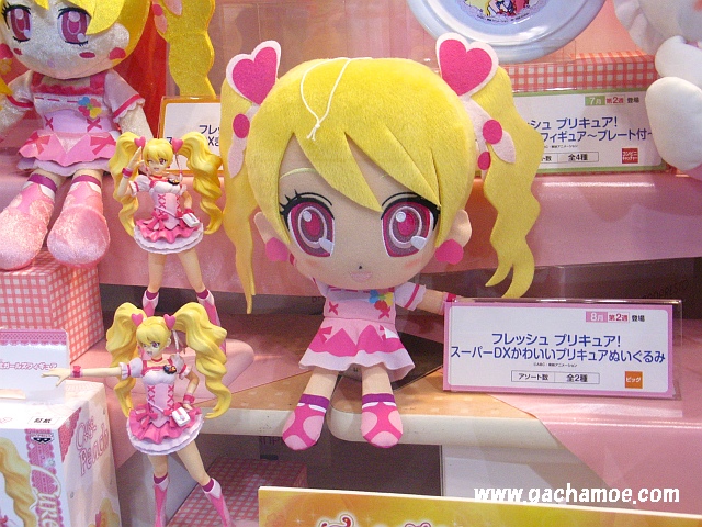 また、フィギュアではないが、同じく「キュアピーチ」のぬいぐるみも展示されていた。 こちらは8月登場予定。